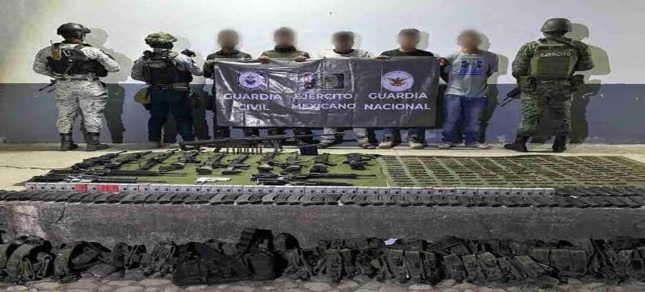 Personal del Ejército mexicano, la Guardia Nacional y la Guardia Civil de Michoacán detuvieron a cinco personas en posesión de un amplio arsenal en el municipio de Buenavista.